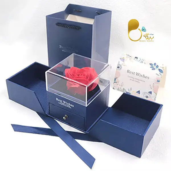 توضیحات: این باکس فلاور رز جاویدان با طراحی شیک و منحصر به فرد، انتخابی عالی برای جواهرات شما است. این جعبه جواهرات فلاور دوام و زیبایی را همزمان ارائه می‌دهد. در 5 رنگ متفاوت آماده ارسال میباشد.