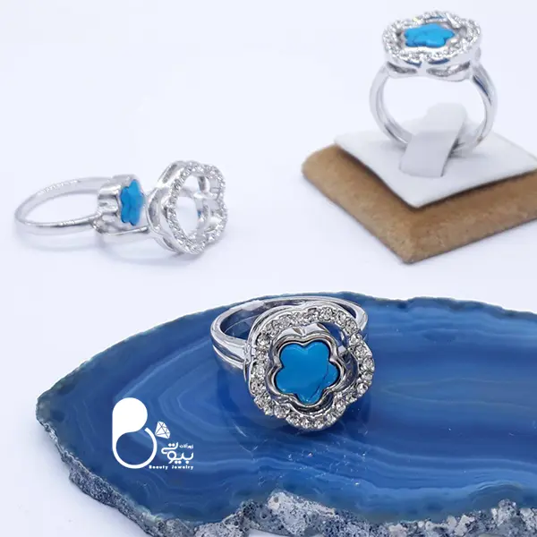 نگین‌های میکرو با چیدمان دقیق در کنار طرح فیروزه‌ای، این انگشتر را بسیار شبیه جواهرات گران‌قیمت کرده است. کیفیت ساخت بالا، ظرافت طراحی و محدود بودن تعداد، این کار را به انتخابی خاص برای خانم‌های شیک‌پسند تبدیل کرده است.