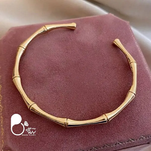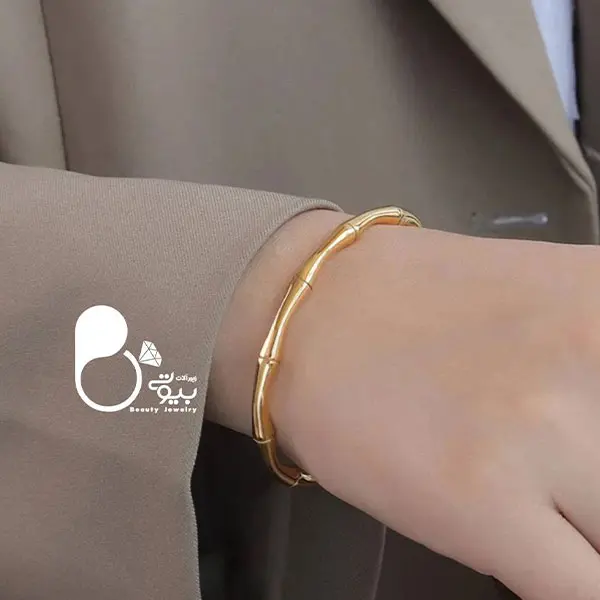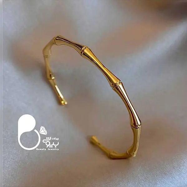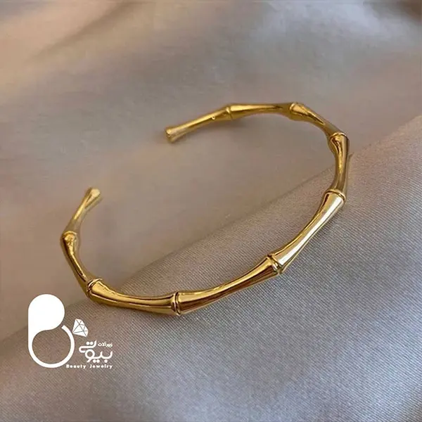 توضیحات: این بنگل بامبوسا با طراحی شیک و منحصر به فرد، انتخابی عالی برای هر مناسبت است. جنس استیل ضد زنگ با روکش طلای 18 عیار ، دوام و زیبایی را همزمان ارائه میدهد و بسیار مشابه نمونه طلا است، چون از روی قالب طلا ساخته شده است.