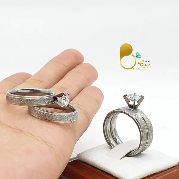 ست حلقه و پشتحلقه استیل طرح طلا شنی انتخابی ظریف، عاشقانه و خاص برای افرادی است که به دنبال ظاهر طلا با هزینه منطقیتر هستند. طراحی شنیِ سطح حلقه، جلوهای مات و بسیار شبیه طلای اصل ایجاد کرده و تکنگین ظریف در مرکز، زیبایی آن را کامل کرده است.