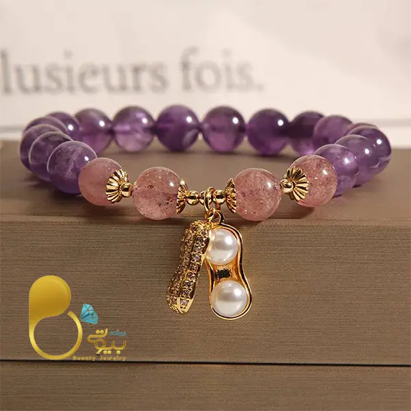 توضیحات: این دستبند پینات آماتیست با طراحی شیک و منحصر به فرد، انتخابی عالی برای هر مناسبت است. این دستبند استیل با آبکاری طلا وسنگ طبیعی دوام و زیبایی را همزمان ارائه میدهد. این دستبند با بادام زمینی نگین دار دوحالته که میتواند در حالت بسته و یا باز باشد.