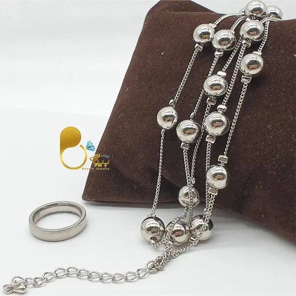 - مدل: خرید ست دستبند شرشره گوی و انگشتر سیلور کپی طلا سفید