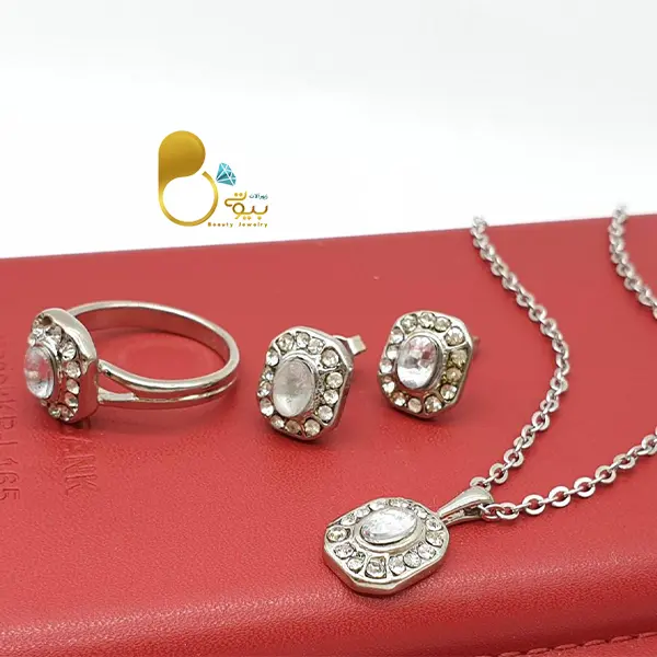 ست کامل طرح نقره با نگین اتریشی سفید