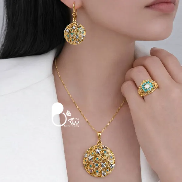 - مدل: ست گوشواره و گردنبند و انگشتر مینا کاری مثل طلا