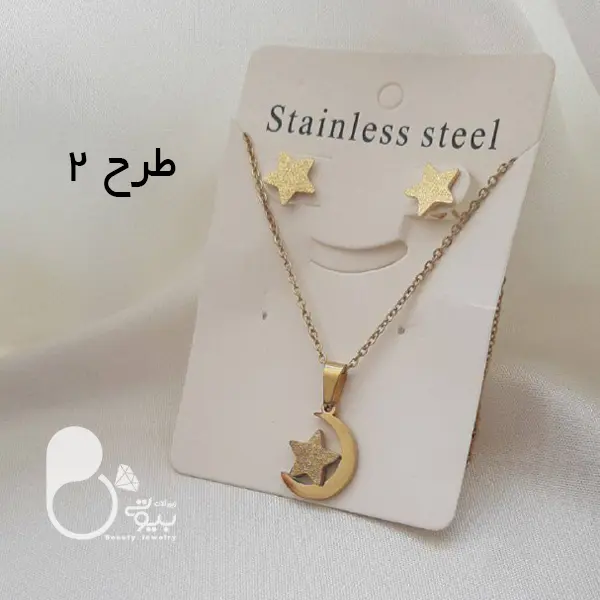 توضیحات: این نیمست ماه طرح طلا با طراحی شیک و منحصر به فرد، انتخابی عالی برای هر مناسبت است. این نیمست استیل با آبکاری طلا دوام و زیبایی را همزمان ارائه میدهد. این نیسمت در دو طرح متفاوت آماده ارسال میباشد.