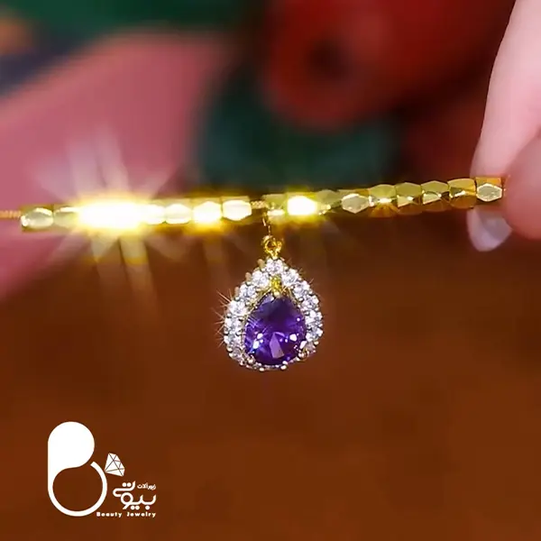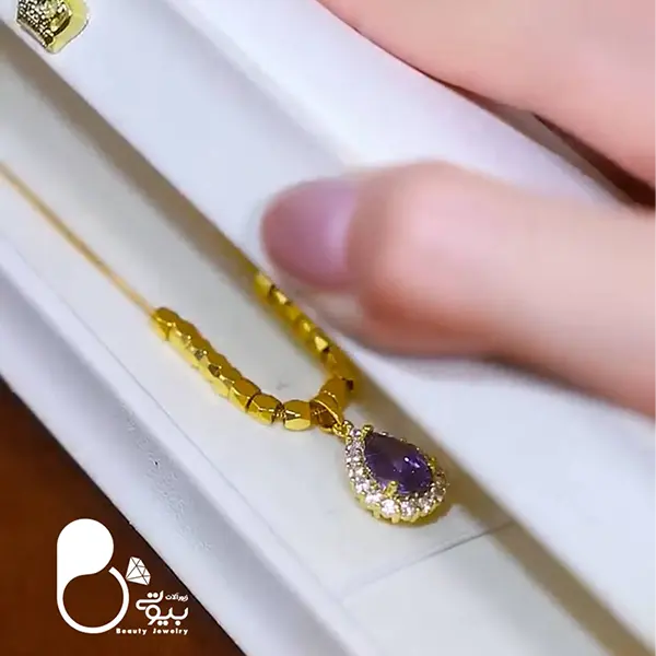 توضیحات: این گردنبند گردنبند نگین بنفش لوکس جواهری با طراحی خاص نگین بنفش، انتخابی لوکس برای استایلی منحصربهفرد است. ساختار اصلی آن از استیل با روکش طلاست تا ضمن حفظ درخشش و جلوه طلا، مقاومت بالایی نیز داشته باشد. نگین بنفش با ترکیب نگین های میکرو اطراف آن، در مرکز مکعبها جلوهای چشمنواز به گردنبند میبخشد و با تضاد رنگی گرم و سرد، توجه هر بینندهای را جلب میکند. این گردنبند پرنسس ترک بسیار مشابه نمونه طلا میباشد.