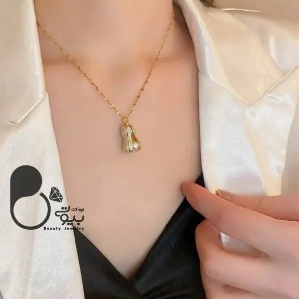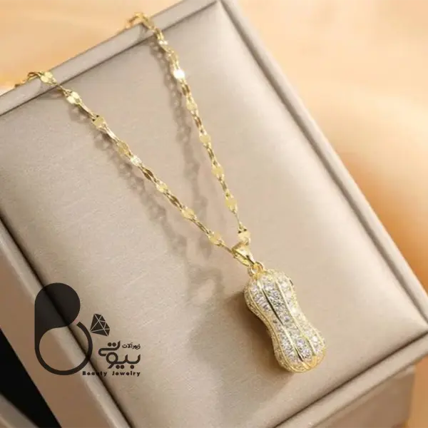 توضیحات: این گردنبند پینات نگین دار با طراحی شیک و منحصر به فرد، انتخابی عالی برای هر مناسبت است. این گردنبند استیل با آبکاری طلا دوام و زیبایی را همزمان ارائه میدهد. این گردنبند به همراه زنجیر، با بادام زمینی نگین دار دوحالته که میتواند در حالت بسته و یا باز باشد.